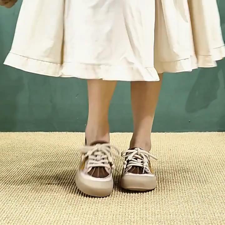 Johnature Mixed Colors Casual Lace-up Flats Genuine Leather Versatile Soft Soled Women's Shoes