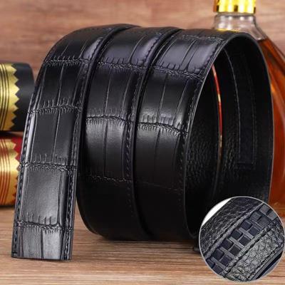 Single-Layer Transparent Dyeing Vegetable Tanned First-Layer Cowhide Automatic Buckle Belt, Men'S Genuine Leather Embossed Crocodile Pattern Belt With