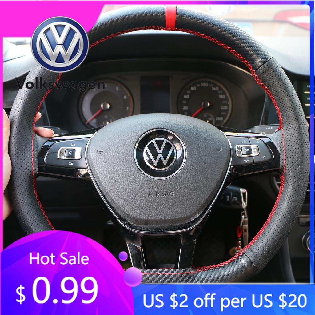 2026 Hot For Volkswagen VW High-End Carbon Fiber Car Steering Wheel Cover Soft Durable Artificial Leather Universal Luxury Autom