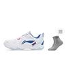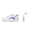 Li Ning Textil, Synthetikleder Dämpfung, Abriebfeste Low-Top Badminton-Schuhe Unisex Weiß Blau AYTU023-6