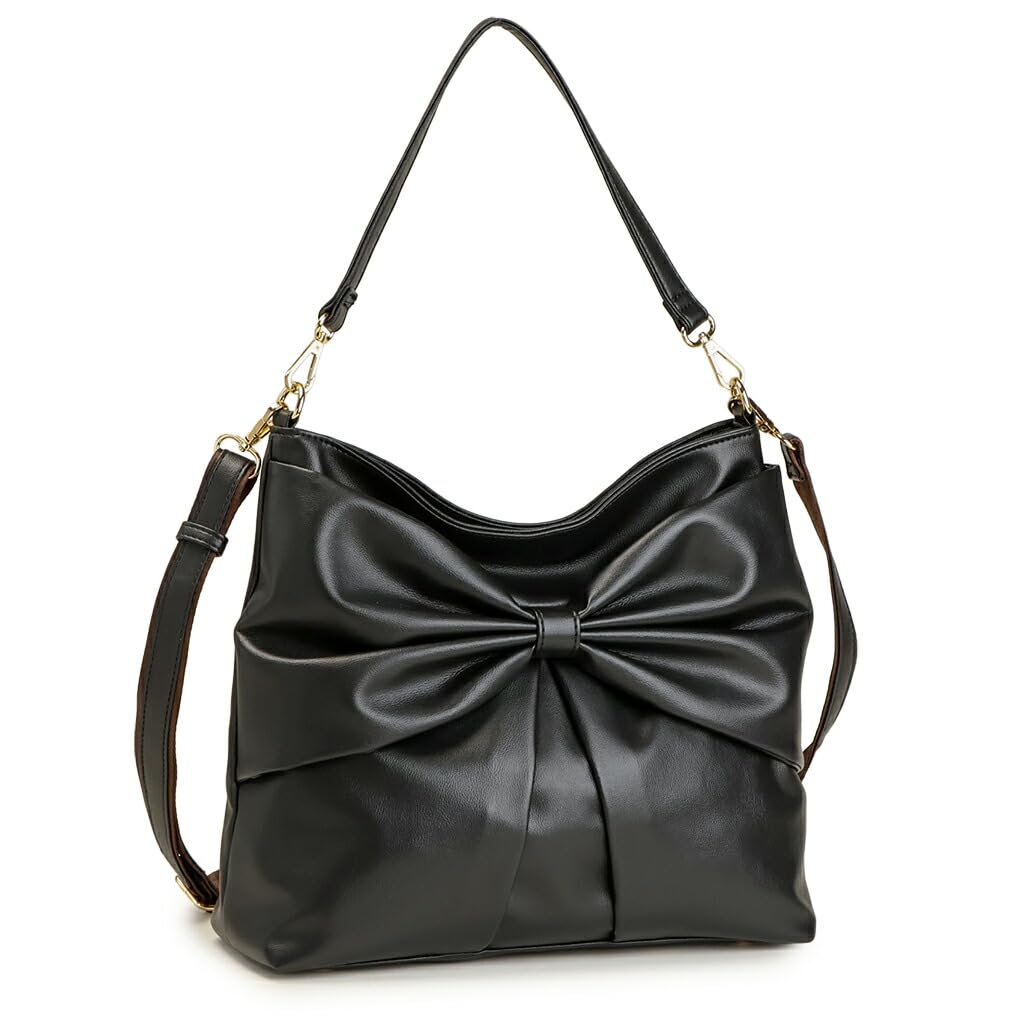Pragma Damen Umhängetasche, Schleifen-Design, Leichtes Synthetikleder, B5 Größe, Weich, Stilvoll, 2-Wege, Crossbody-Tasche (Schwarz)