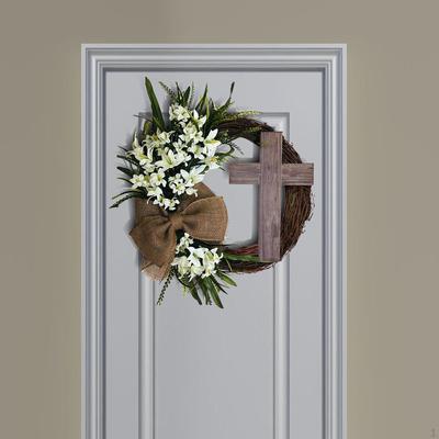 Buntes Design Oster-Tulpen-Kreuzkranz Kunstblumen Türhänger Dekorationen für das Gartentor