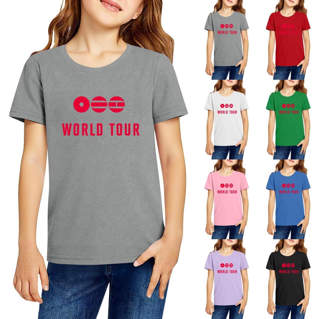 Modische Rundhals-Kurzarm-Arbeitskleidung bedruckte Oberteile für Kinder-Sommeroberteile