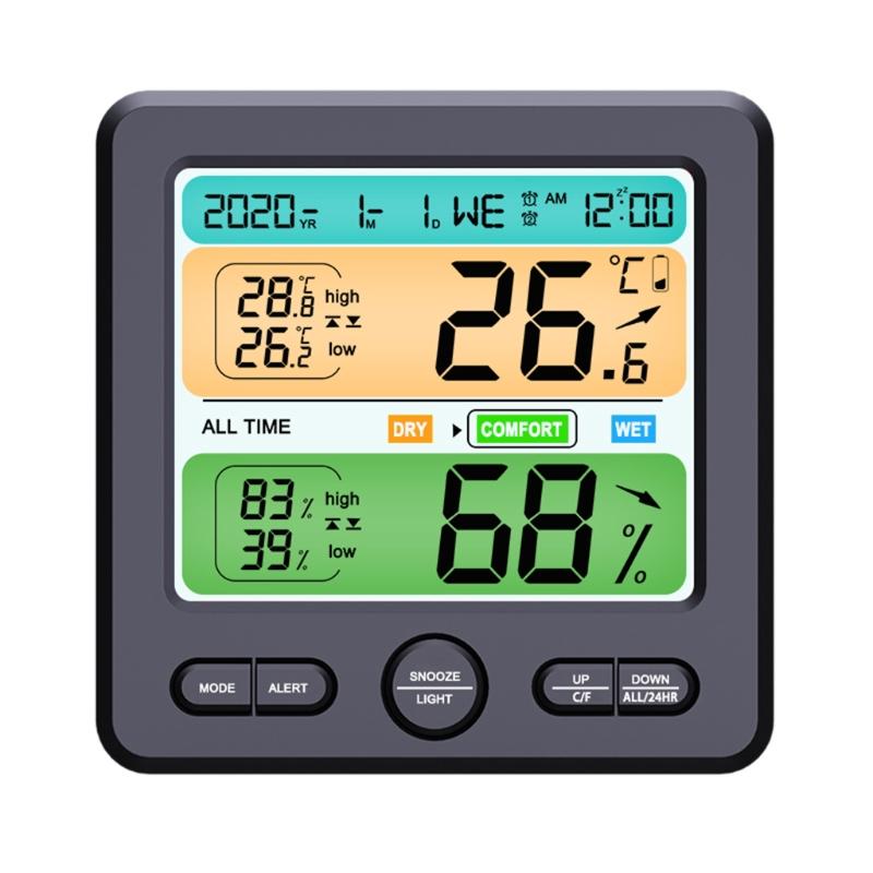 High Precision Temperature Humidity Meter Color Display Weather Thermometer Alarm Clock Desktop Decorations for House