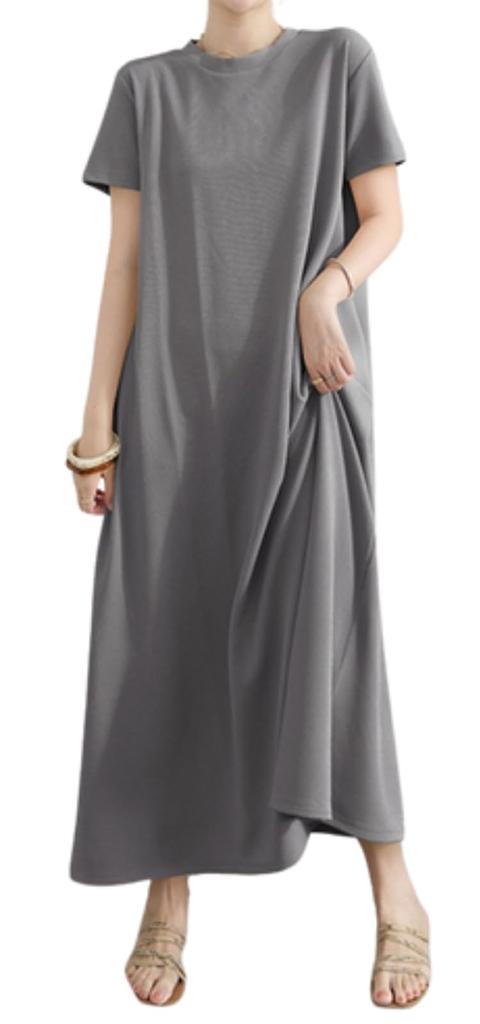 This T-shirt dress features a relaxed silhouette. Its simple yet sophisticated design makes it a stylish piece that can be worn on its own, making it a great addition to any everyday outfit. It's light and comfortable, making it perfect for the spring and summer seasons.