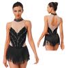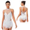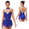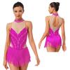 Pailletten Fransen Body für Damen Neckholder Jazz Latin Tanz Samba Chacha Quaste Leotard Akrobat Kostüm
