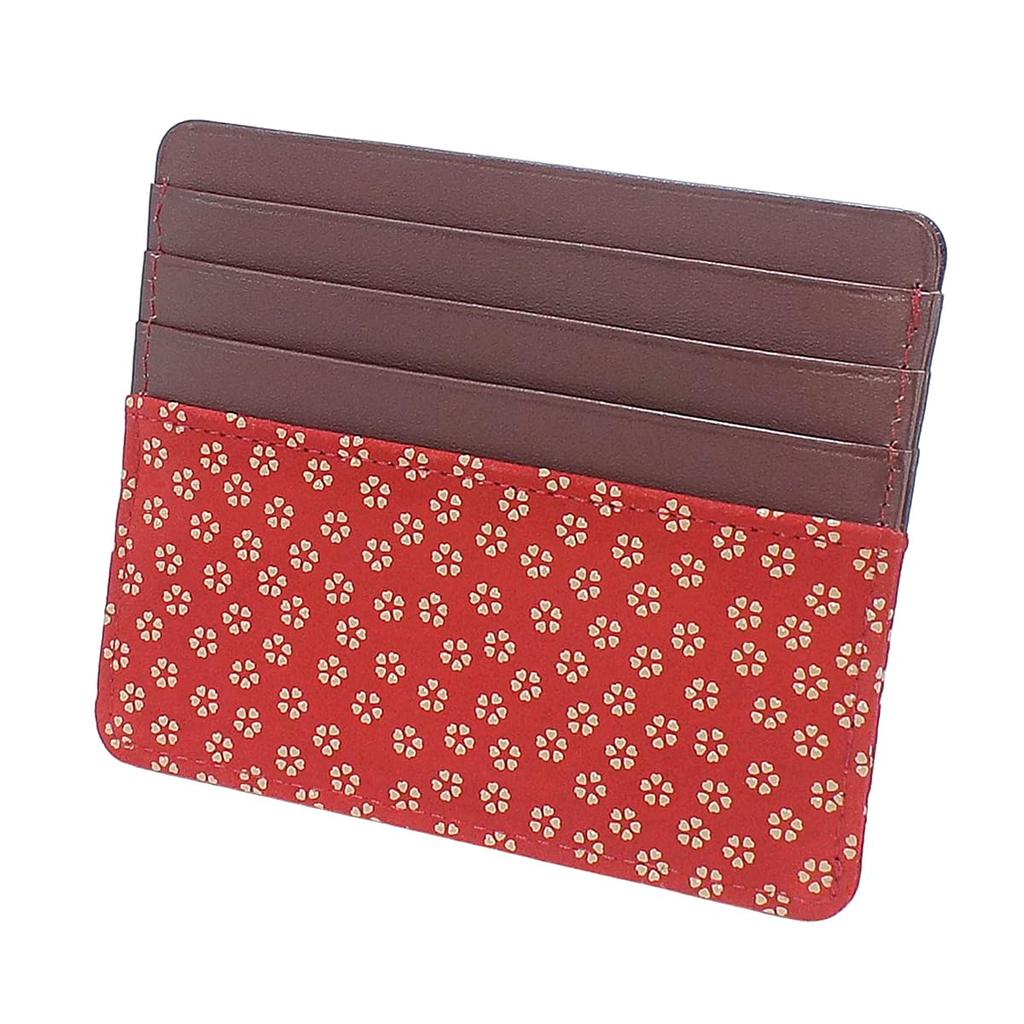 Indenya Schlanke Kartenhülle, Dünn, Hirschleder, Rot mit weißem Lack, Kleines Kirschblütenmuster, 2530-13-002