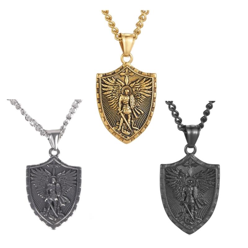 Umarme die Macht und den Schutz des Erzengels mit unserer Vintage Edelstahl-Anhänger Kette, entworfen, um Mut und Stärke für Männer zu symbolisieren, die ein bedeutungsvolles Accessoire suchen.