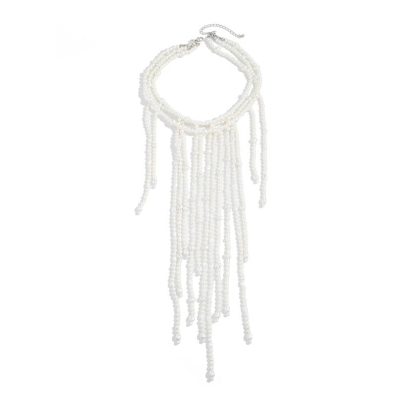 Fashionable Imitation Pearls Layering Necklace With Flowing Fringe Detail Adjustable Beaded Clavicle Chain