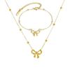Fashionable Steel Jewelry Set Featuring Butterfly Bowknot Pendant Elegant Necklace And Bracelet For Everyday Wear