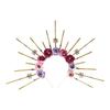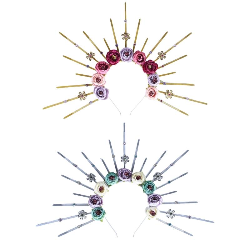 Elegant Rose Flower Hair Hoop Adjustable Size Sunbursts Headband with Rhinestones Comfortable Hairband Party Ornament