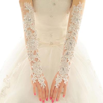 Hochwertige fingerlose Spitzenhandschuhe für die Brauthochzeit mit Strasssteinen für Frauen, Absatz, weiß, Hochzeitsaccessoires, Ellenbogenlänge