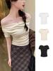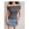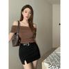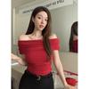 One-word Shoulder Shirt Slim and Thin, Tight Waist Short Top, Sexy Bottoming Shirt Top