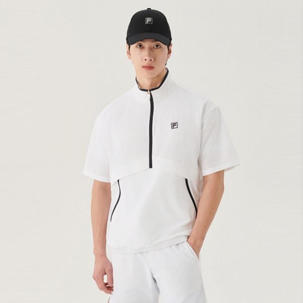 The FILA Lightweight Stretch Short Sleeve Anorak is a trendy short sleeve jacket with an internal waist string. When loosened, it creates a clean, modern fit, and when tightened, it gives a slim silhouette. Made from highly elastic nylon stretch material, it provides excellent mobility during wear and maintains its shape after washing. The hem features an adjustable string, and the shoulders have a color block point. The color block design following the seams and FILA's iconic F-box patch give a classic yet modern look, making it versatile for use from spring to early summer.