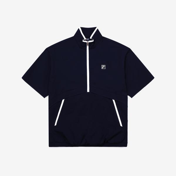 The FILA Lightweight Stretch Short Sleeve Anorak is designed in an anorak jacket style with short sleeves, featuring lightweight material and stretch functionality. It includes an adjustable waist string to customize the silhouette. This product is suitable for the men's sports t-shirt or outerwear category, optimized for sports and leisure activities.