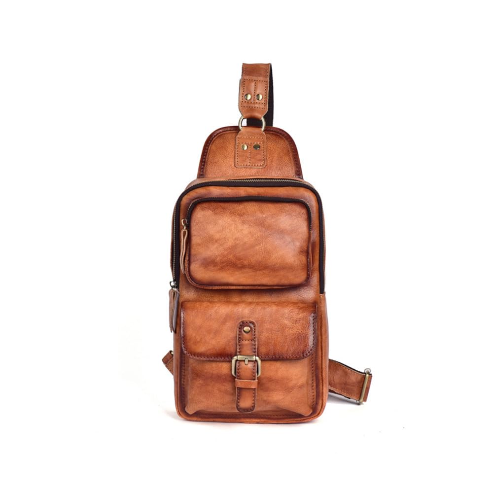 Whatna Antik-Stil Gegerbtes Natur-Rindsleder Umhängetasche Ein-Schulter-Tasche für Herren, Reversibler Riemen links oder rechts, Echtes Leder, Dick,
