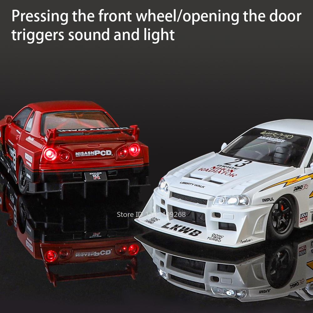 1:24 Skyline GTR-S15 F1 Safety Sports Car Model Toy Alloy Diecast Sound Light Racing Car Shock Absorption Vehicle Kids Gifts
