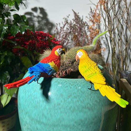 Bird Ornament Resin Scarlet Macaw Sculpture Realistic Lifelike Parrot Statue Waterproof Outdoor Garden Decoration