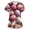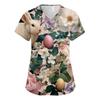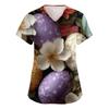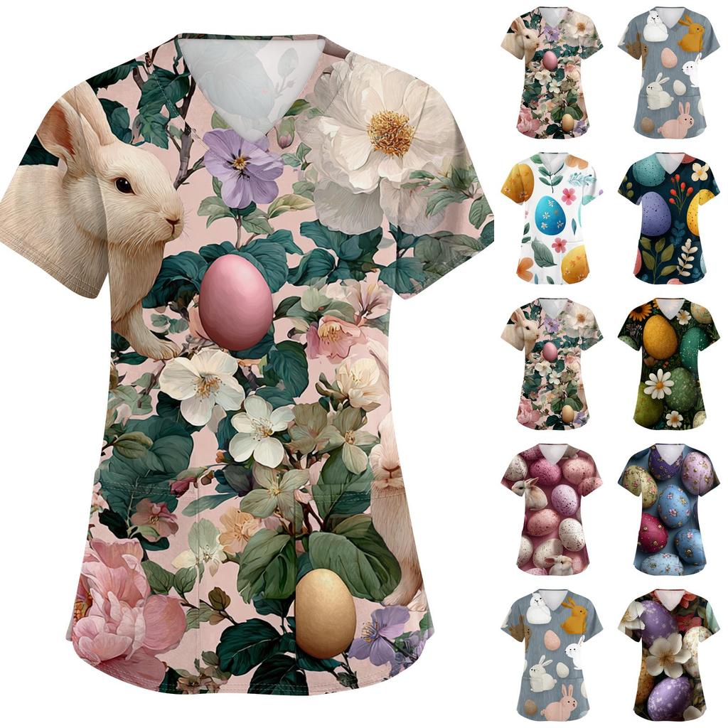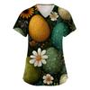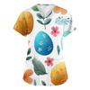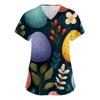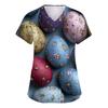 Damenmode V-Ausschnitt Kurzarm Arbeitskleidung Mit Taschen Osterdruck Oberteil Pflegekraft Uniform