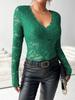 Elegant 2025 V-Neck Fan Collar Lace Pullover - Long Sleeve Slimming Top