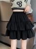 Modischer schwarzer Midi-Rock 2025: Rüschen-Schlankheitsdesign, Hohe Taille, Große Größen, Frühjahrs- und Herbst-Puff-Stil für Damen