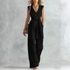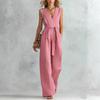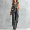Damen V-Ausschnitt Weiter Bein Ärmellos Mit Gürtel Lang Jumpsuit