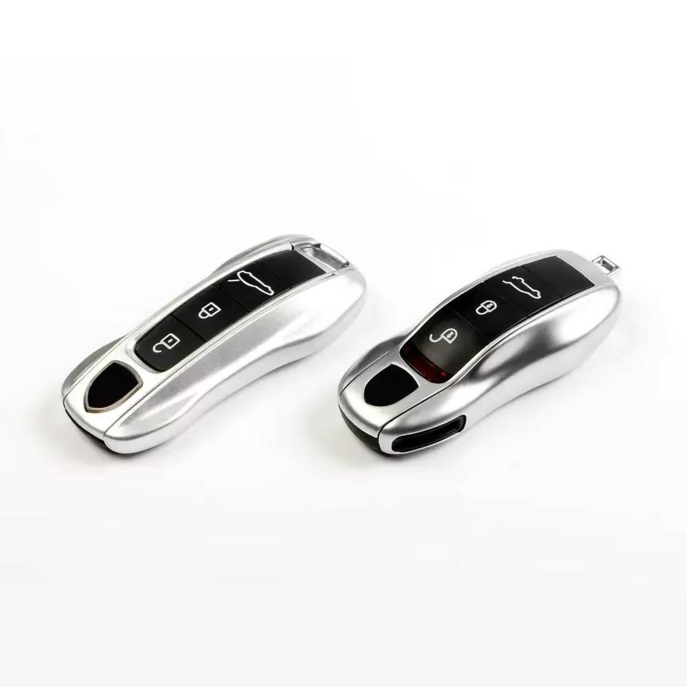 Autoschlüsselhülle Rhodium Silber Fernbedienung Schutzhülle für Porsche Panamera Macan Cayenne 911 718 Taycan Boxster Cayman