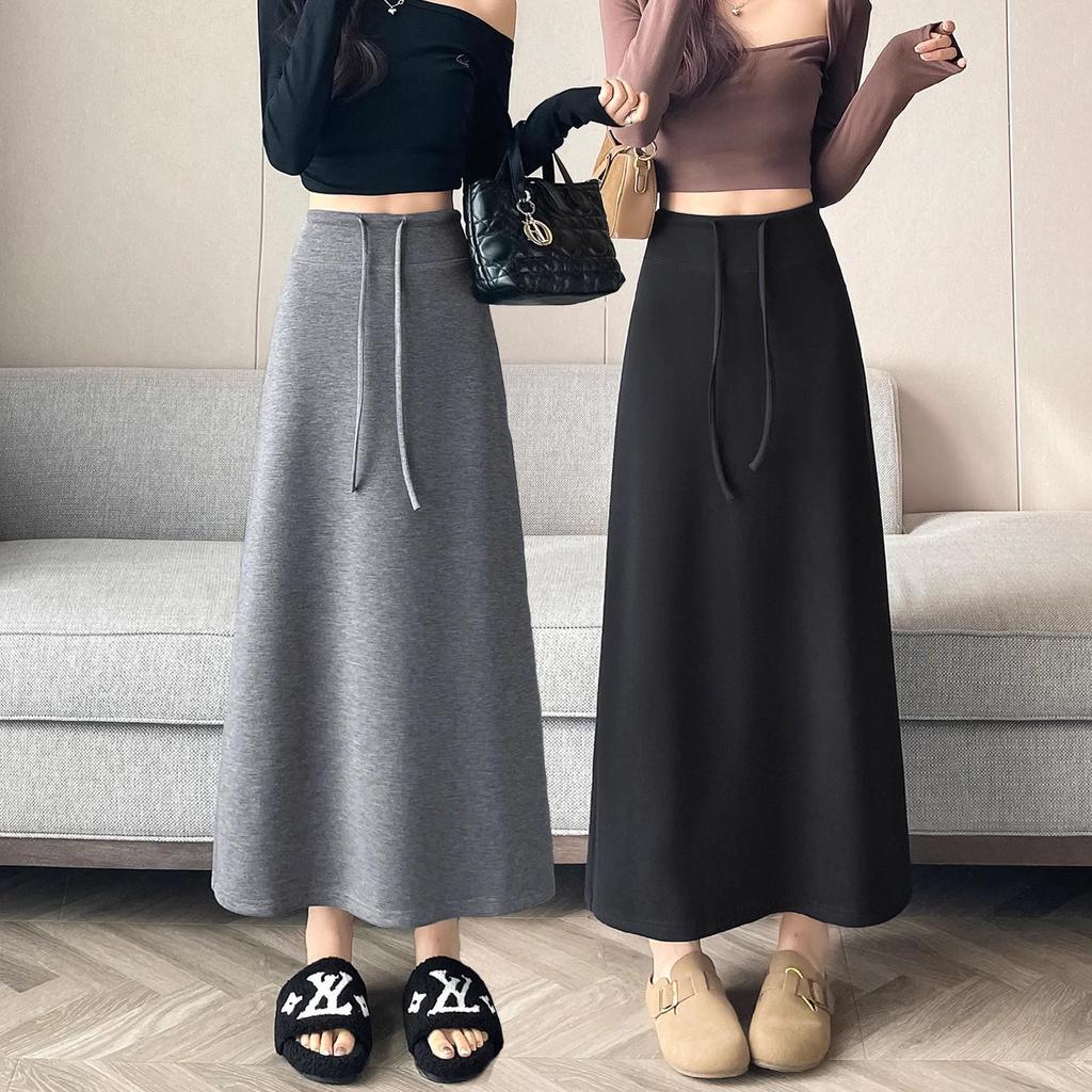 New 2025 Slimming Black High-Waisted A-Line Midi Skirt for Women - Early Autumn Versatile, Lazy Style