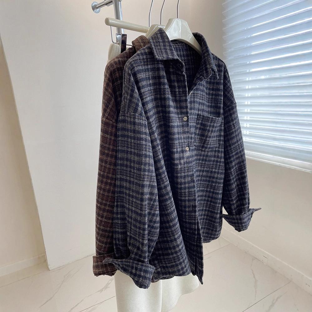 Umarme zeitlosen Stil mit diesem Retro-Karoshemd für Damen, entworfen für die Herbst-/Wintersaison 2025.. Hergestellt aus hochwertigem Polyester, bietet dieses Hemd einen angenehmen und strapazierfähigen Tragekomfort.. Das klassische Karomuster sorgt für einen Vintage-Charme, während die lockere Passform und die langen Ärmel es perfekt zum Schichten machen.. Der maßgeschneiderte Ausschnitt verleiht einen Hauch von Eleganz und sorgt für einen schicken Look, egal ob lässig getragen oder für einen Ausflug schick gestylt.. Perfekt für alle, die Komfort suchen, ohne auf Stil verzichten zu müssen.