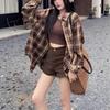 This stylish women's cardigan shirt effortlessly combines the classic charm of a plaid pattern with a modern Korean style. Made from durable polyester material, it offers a comfortable fit suitable for both spring and autumn seasons. The design features a loose fit, providing a relaxed silhouette, and is complemented by long sleeves that add a touch of elegance. The turn-down collar enhances its retro appeal, making it a versatile addition to any wardrobe. Perfect for layering or as a standalone piece, this cardigan shirt is ideal for those seeking both comfort and a chic, timeless look.
