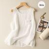 Leinen-Baumwoll Hosenträgerweste: Damen locker Sommer Basis-Oberteil