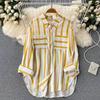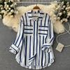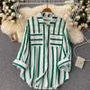 2026 Mittellange Mehrfarbige Vertikal gestreifte Hemdjacke - Damen Koreanischer Stil Lässiges Lockeres Oberteil für Frühling, Sommer und Herbst