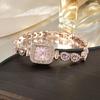 - Elegantes Kreisdesign: Verfügt über ein schickes, quadratisches Zifferblatt mit einem kleinen, zierlichen Zifferblatt, das mit funkelnden Strasssteinen und einem anmutigen Perlenakzent verziert ist und so eine raffinierte und feminine Note verleiht.
