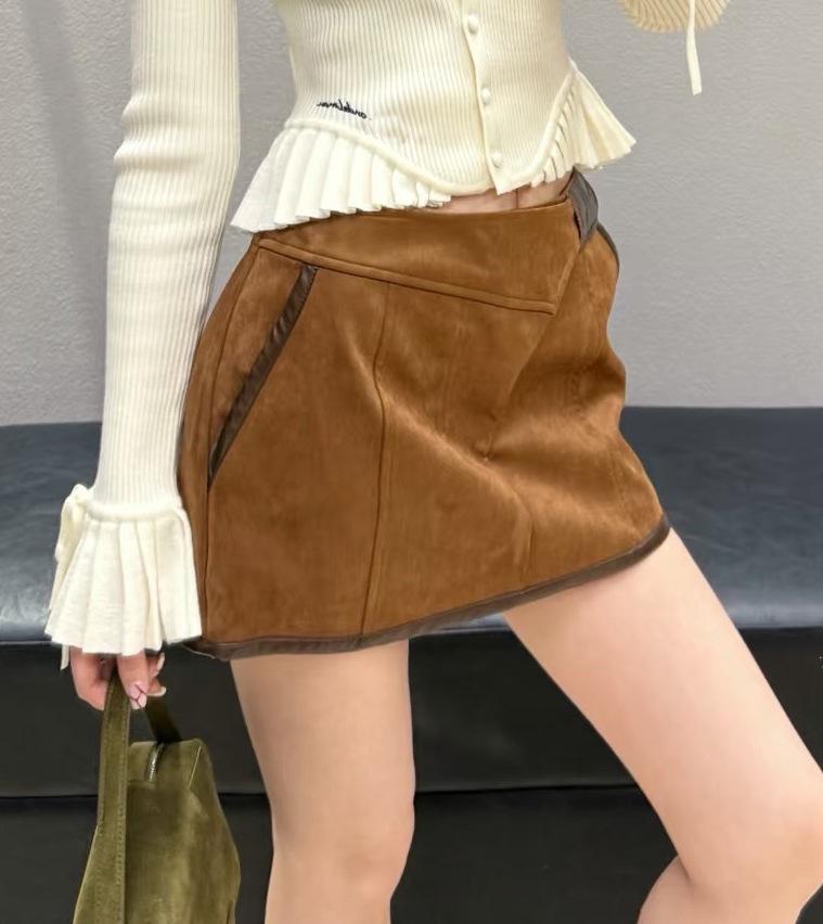 Nanyou Retro A-Line High Waist Brown Leather Mini Skirt for Women
