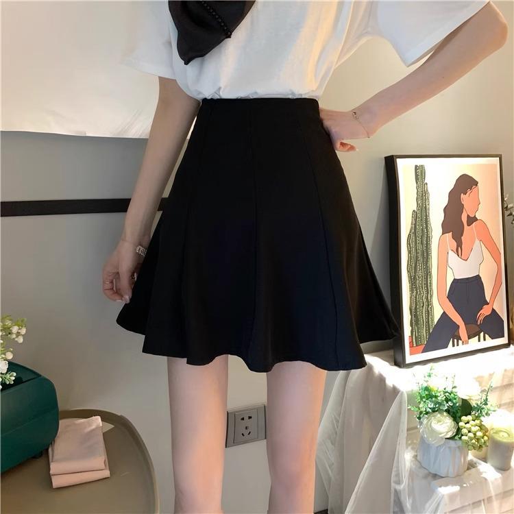 2026 Summer Slimming Pleated Little Black A-line High Waist Plus Size Anti-exposure Student Skirt.