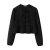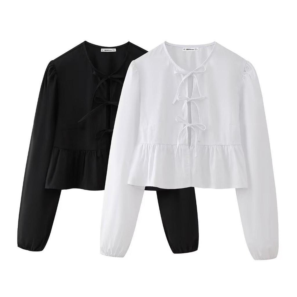 Women's Autumn/Winter Long Sleeve Bow Cardigan T-shirt - Solid Color