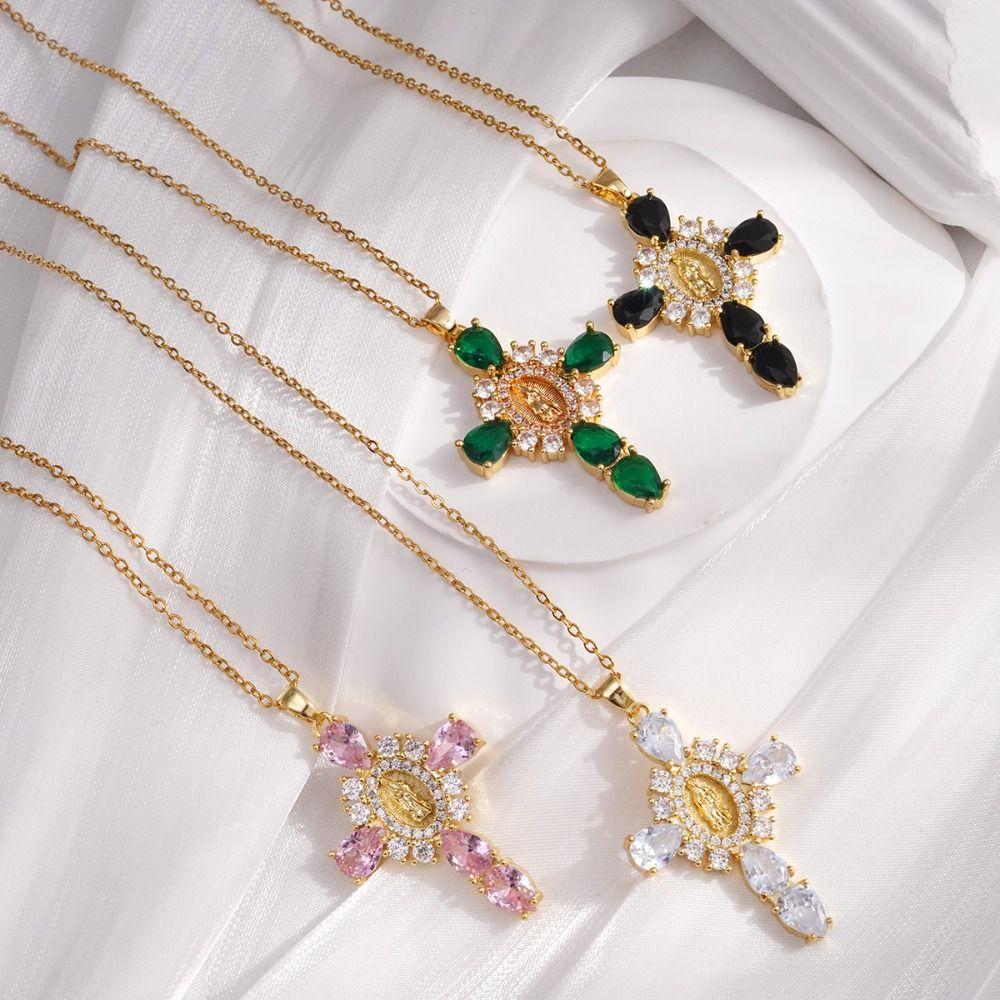 Vergoldetes Kristall-Kruzifix-Halskette Retro Europäischer Stil Kruzifix-Anhänger Kette Herren