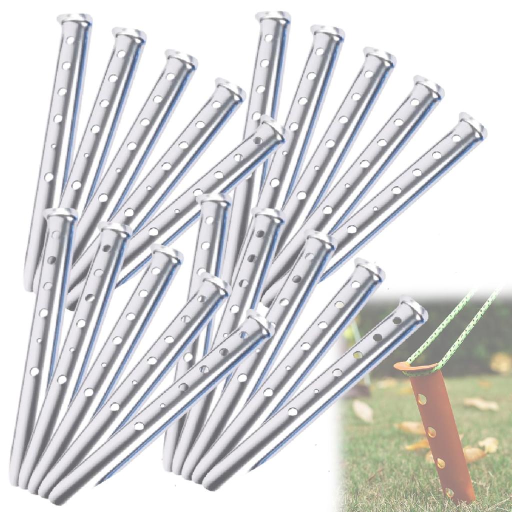 This ultra-lightweight, high-strength aluminum U-shaped peg set is high-quality and durable! Compared to standard pegs, these pegs have an incredibly long 31cm base, allowing for deep installation and less chance of slipping out. They're ideal for soft sand and snow. The multiple holes on each peg allow for convenient attachment of ropes and other accessories depending on the situation. This practical item is perfect for pitching tents and tarps with peace of mind, ensuring long-lasting use. Don't miss out on the opportunity to buy sets of 10 or 20!
