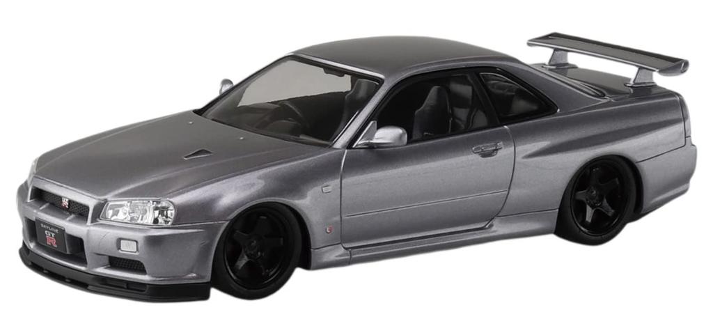 Aoshima Bunka Kyozai Die Snap-Kit-Serie Nissan R34 Skyline Custom-Räder Plastikmodellbausatz (AOSHIMA) 1/32 GT-R (Athlet Silber) Vorgefärbt Nr.