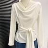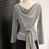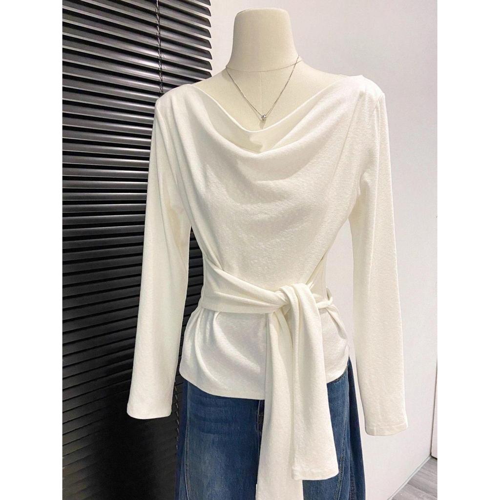 Women's French Swing Tie-Waist Long-Sleeve T-Shirt - Autumn 2026 New Arrival, High-End Slim-Fit Base Layer