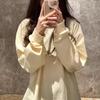 Women's White Pure Cotton Long-Sleeve T-shirt - Round Neck, Loose Fit, Ideal for Layering in Spring, Autumn, and Winter.