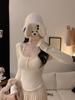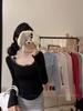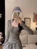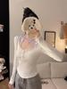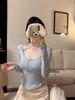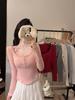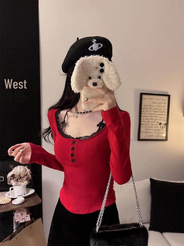 Women's Red Lace Patchwork Long Sleeve Slim-Fit T-shirt - Autumn/Winter Trendy Base Layer Top