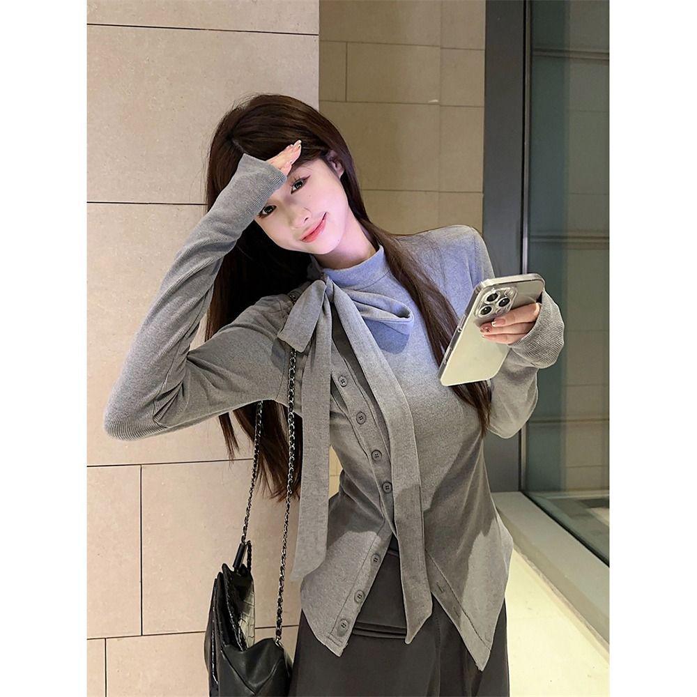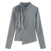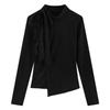 Koreanischer Stil Gebürstetes Verdicktes Langarm-T-Shirt mit Krawatten-Schnürung Stehkragen, Herbst/Winter Schlanke Passform