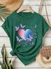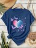 Erleben Sie die perfekte Mischung aus Stil und Komfort mit unserem lockeren Sommer-Kurzarmtop für Damen.. Dieses T-Shirt aus weicher, farbiger Baumwolle hat einen charmanten Rundhalsausschnitt und einen verspielten Schmetterlingsherz-Print, der Ihrer Garderobe einen Hauch von spielerischer Eleganz verleiht.. Die kurzen Ärmel sorgen für einen luftigen Sitz und machen es zur idealen Wahl für Ausflüge bei warmem Wetter.. Perfekt für ungezwungene Ausflüge oder entspannte Zusammenkünfte, kombiniert dieses Oberteil mühelos Komfort und Stil.