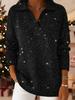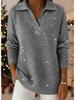 2025 Autumn/Winter Solid Color Lapel Pullover with Silver Thread and Crystal Accents