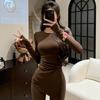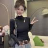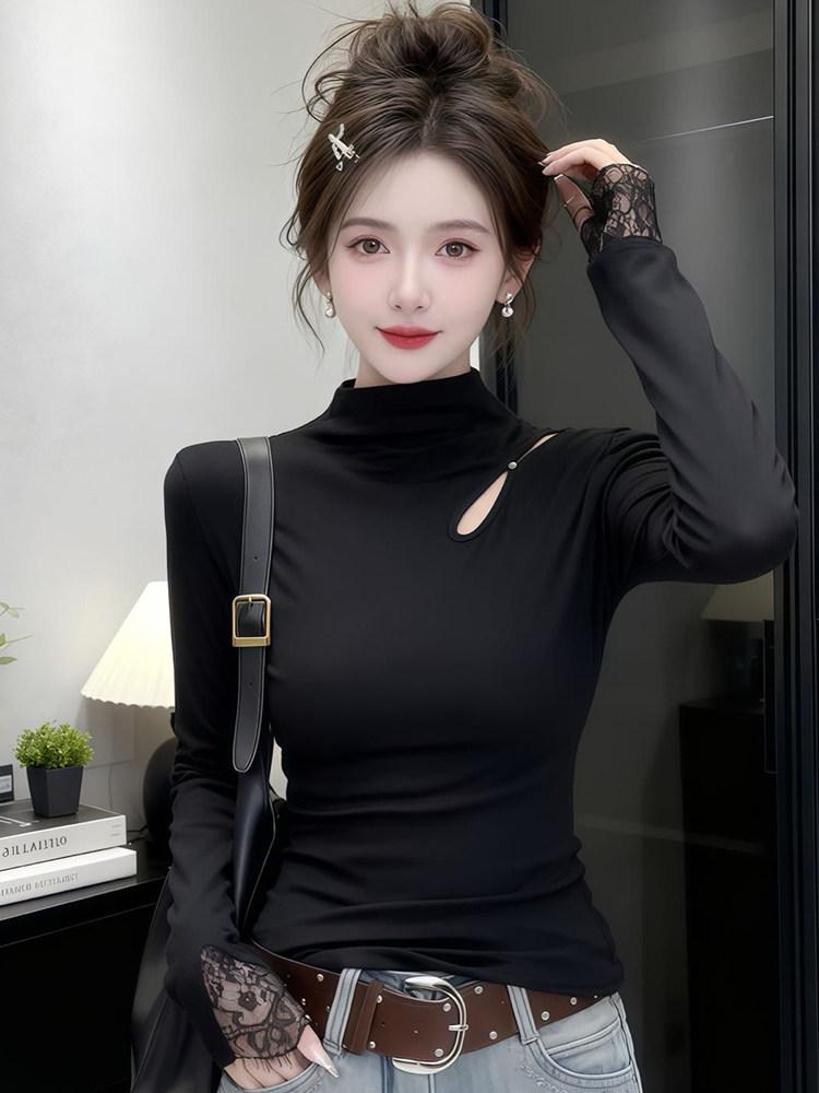 Damen Elegante Schlanke Passform Hoher Kragen Cut-Out Fleece Thermo-Unterhemd - Langarm Herbst/Winter Oberteil
