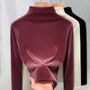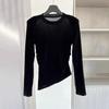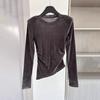 Damen Luxe Samt Langarm-T-Shirt – 2026 Rundhals Schmale Passform für den frühen Frühling/Herbst