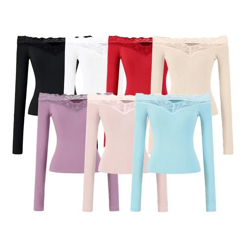 Elegant Lace One-Shoulder Long-Sleeve Women's T-shirt - 2026 Slim Fit, Classy & Off-the-Shoulder Style