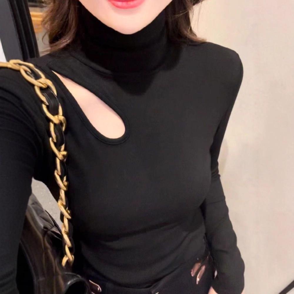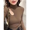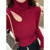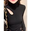 Plus Size Elegant Double-Sided Hollow High Neck Slim Fit Long Sleeve Top for Women, Autumn/Winter 2025 Edition
