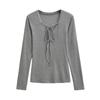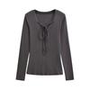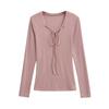 Women's Deep V-Neck Lace-Up Long Sleeve Slim Fit Autumn Top